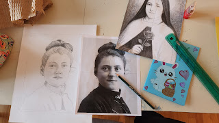 During the last month of school, Emma has been working hard on a portrait of Terese of Lisieux for her final art piece of the year. This is also her confirmation saint. She has to write a report on her next year and present it to the church before getting confirmed. Analise has been enjoying her clay sculpting this year and may do more art with her friend Tessa's mom, who works as an artist, this summer.